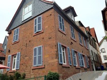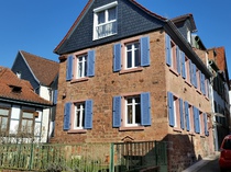 Haus in Gelnhausen mit taubenblauen Holzläden