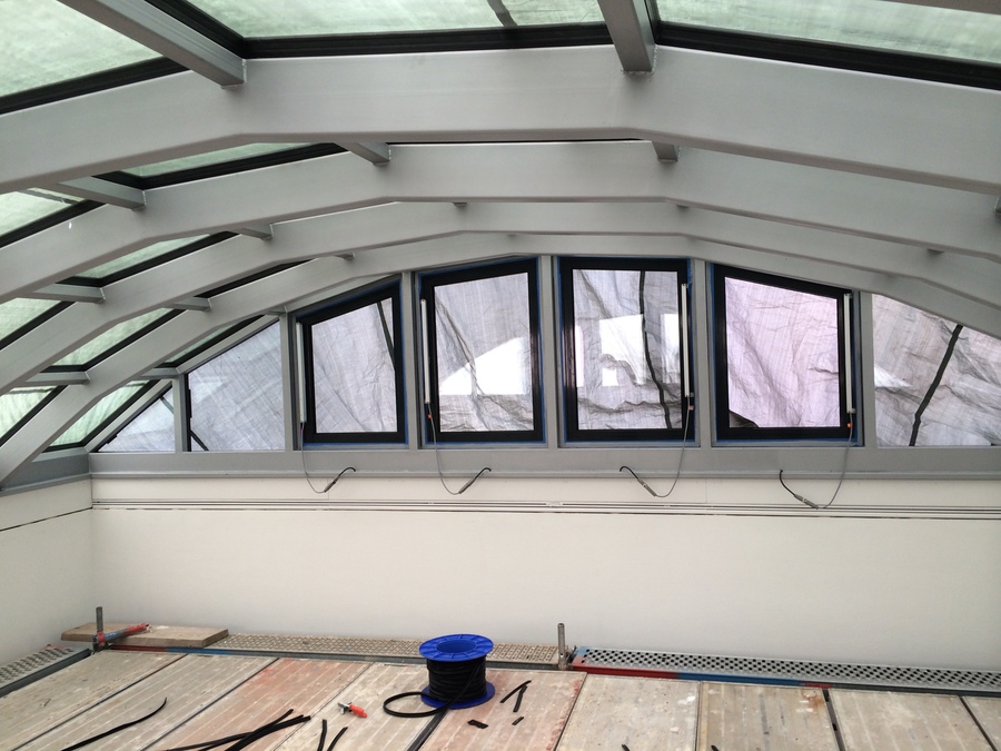 Komplette Demontage der alten Glasfassade und Neuaufbau der Glasfassade mit 3 fach Glas, Ug 0,6 mit Sonnenschutzglas und
